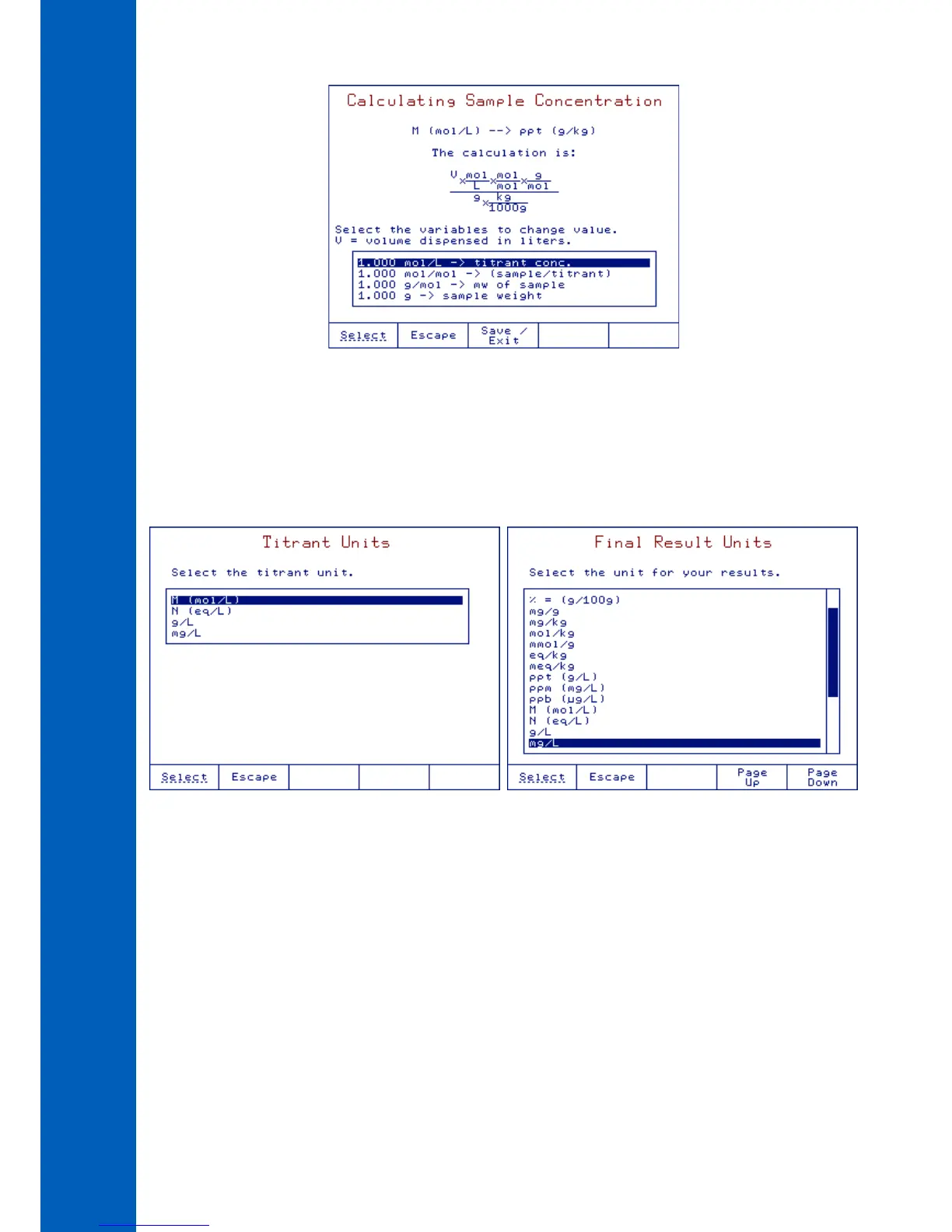 A formula example is shown below using M (mol/L) as the titrant unit and ppt (g/kg) as the final result unit:
