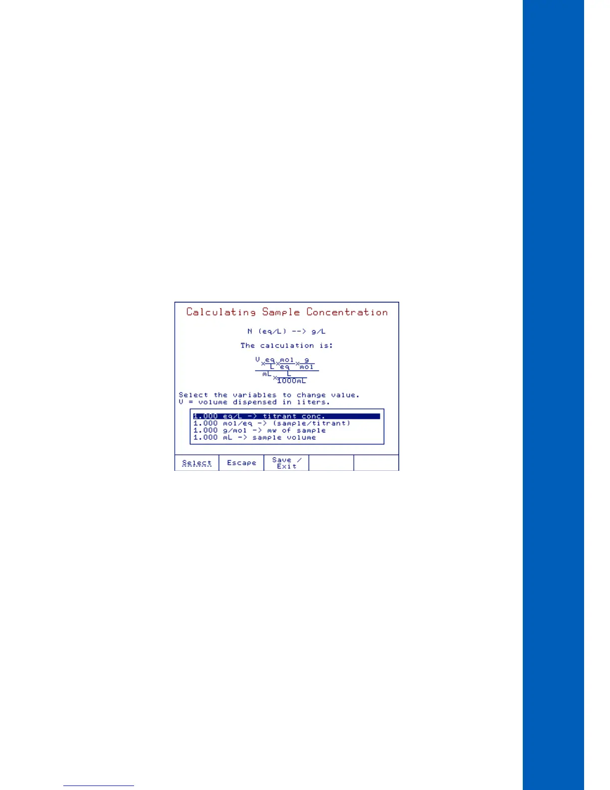 A formula example is shown below using N (eq/L) as the titrant units and g/L as the final result units: