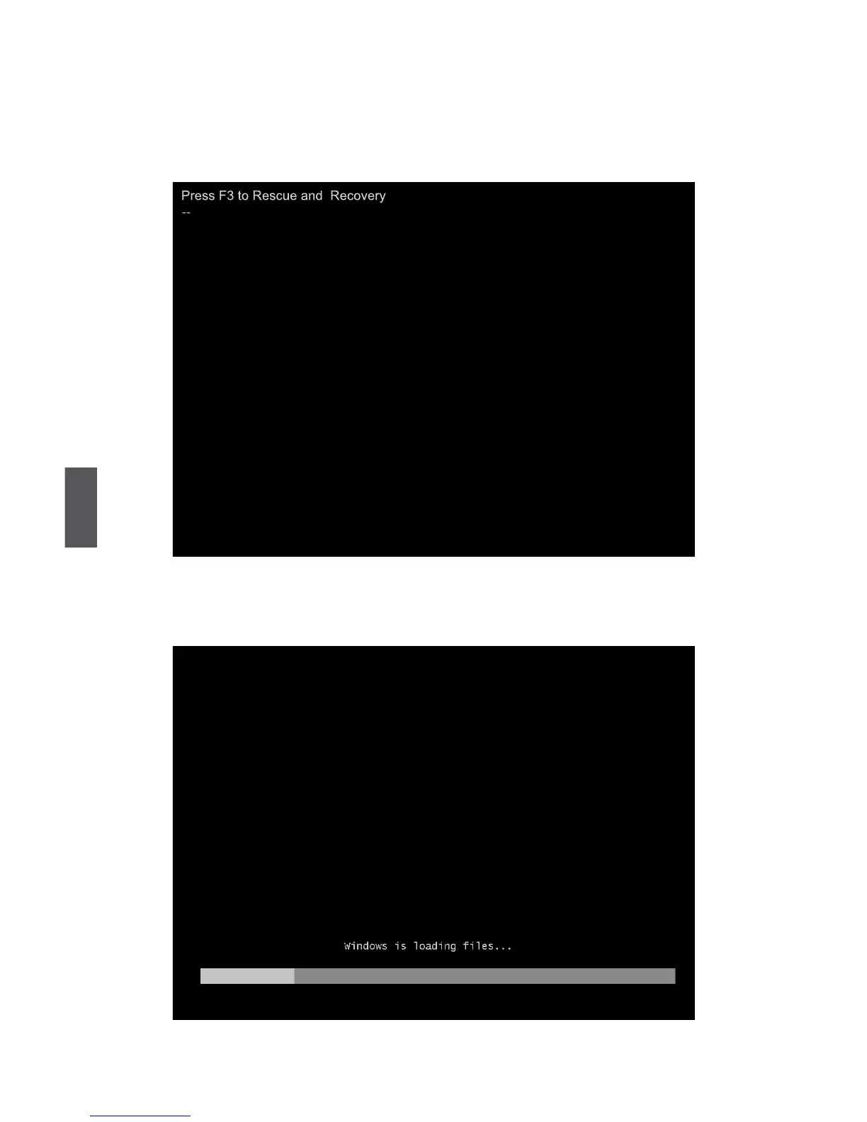 1. Power on the computer, when the message "Press F3 to Rescue and Recovery"