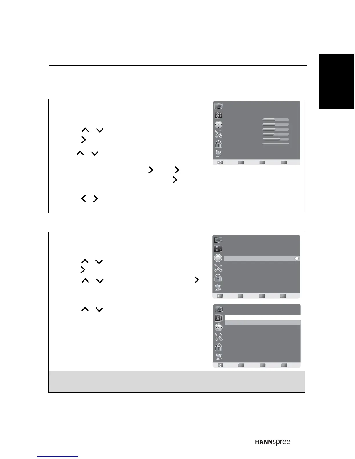 6 Press / to adjust or select the settings.