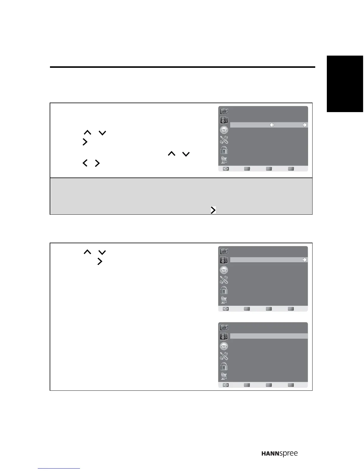 2 Select each adjustable setting with / , then