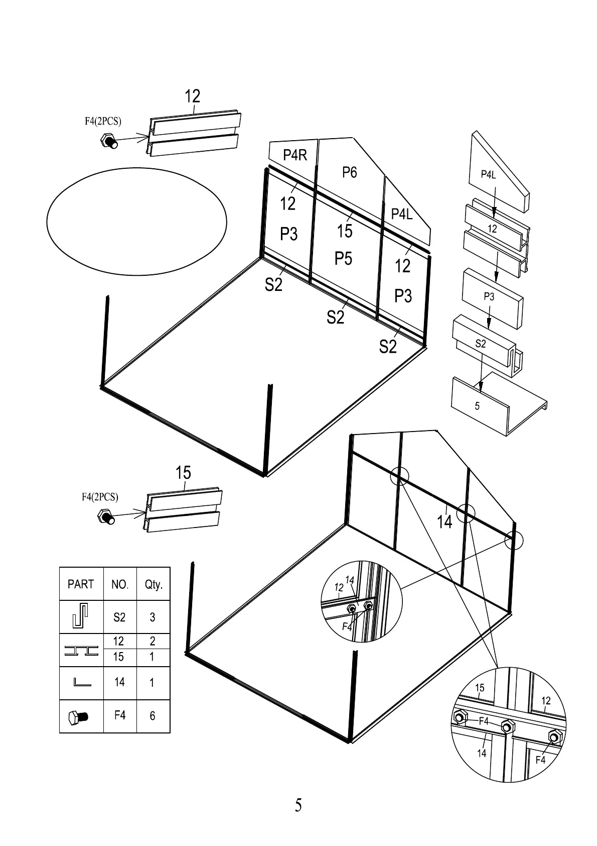 1.Attach panels P3-P5-P3