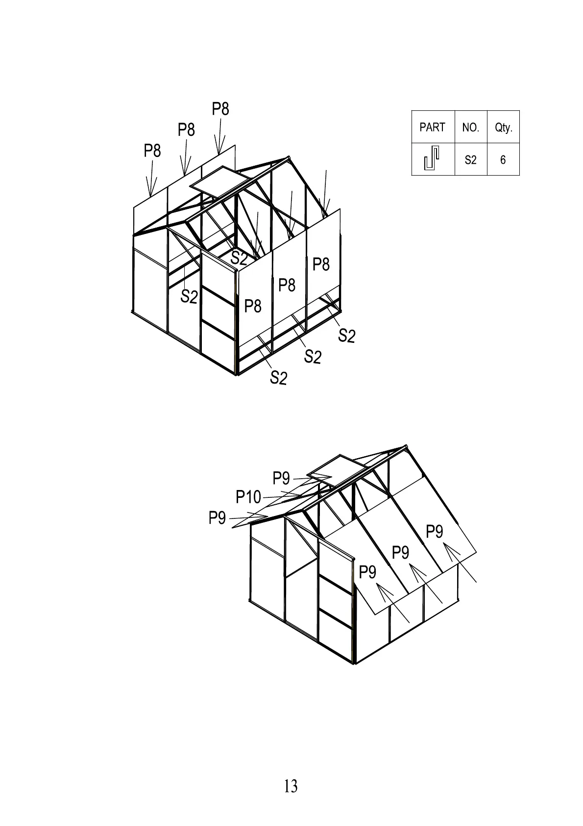 1.Insert all roof panels (P9,P10).