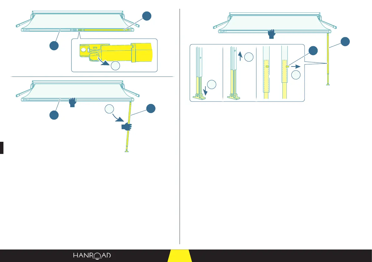 ■ Pull the right awning foot (2) away from the awning cloth (1).