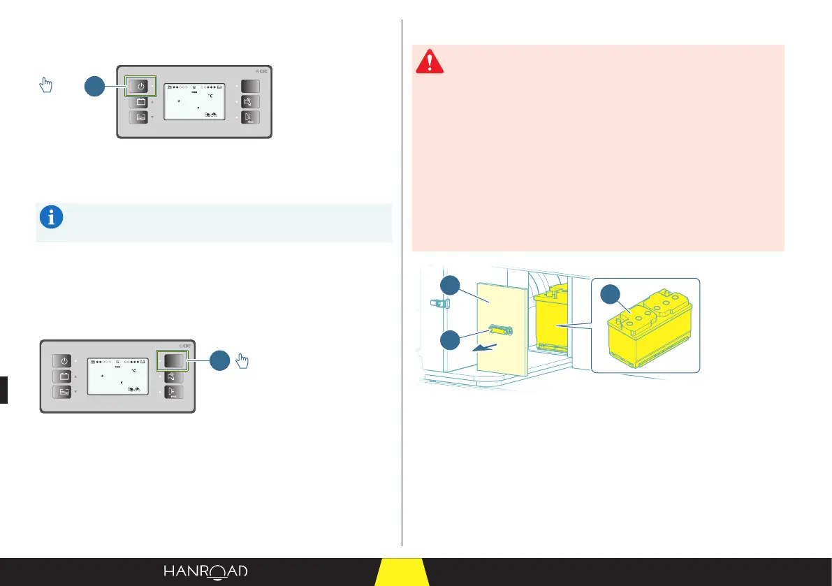 1 Einschalttaste für Beleuchtung, Kühlschrank und Steckdosen