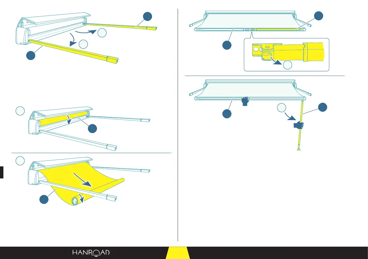 ■ Klappen Sie die linke Markisenstütze aus (2).