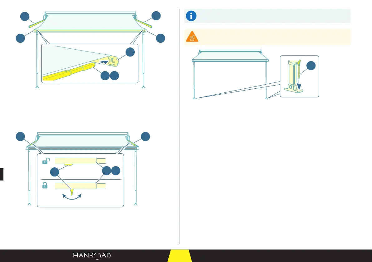 ■ Spannen Sie das Markisentuch mithilfe des entsprechenden