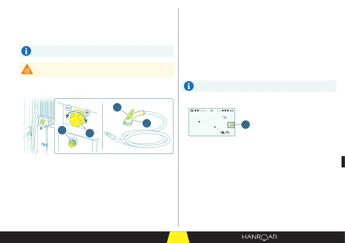 ■ Stellen Sie mit dem Mischregler (2) die gewünschte Wassertemperatur ein