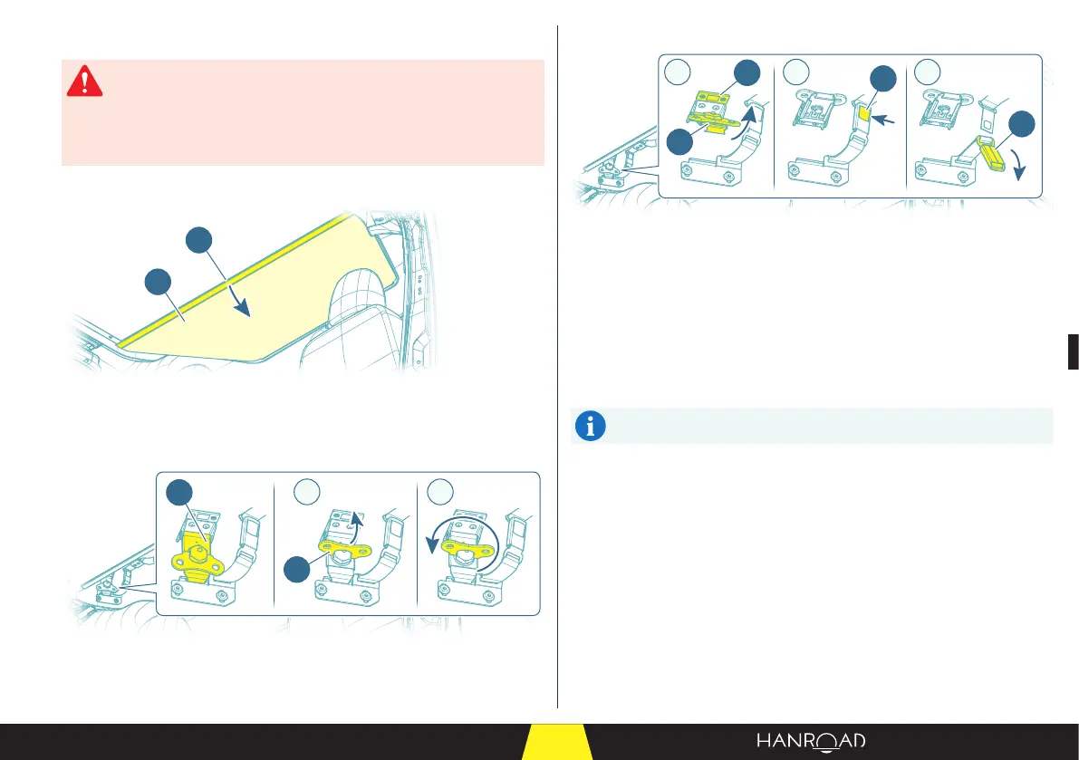 ■ Tirer sur la bande Velcro (2) de l'habillage de toit pour accéder au système de