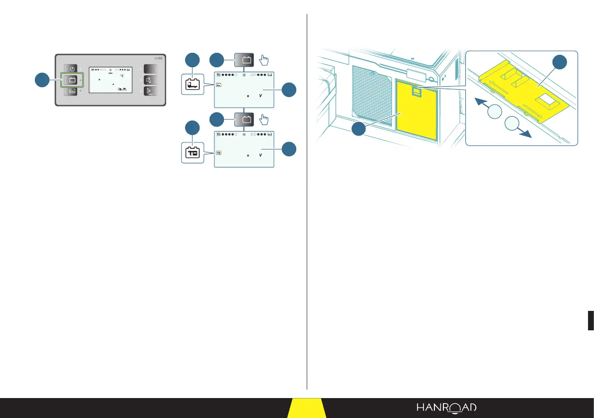 Het pictogram "motoraccu" (4) wordt weergegeven op het scherm.