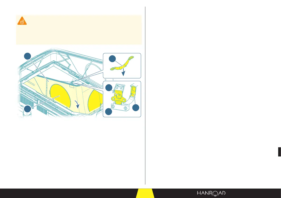 ■ Maak de dakbekleding los en laat deze hangen tot volledige sluiting is