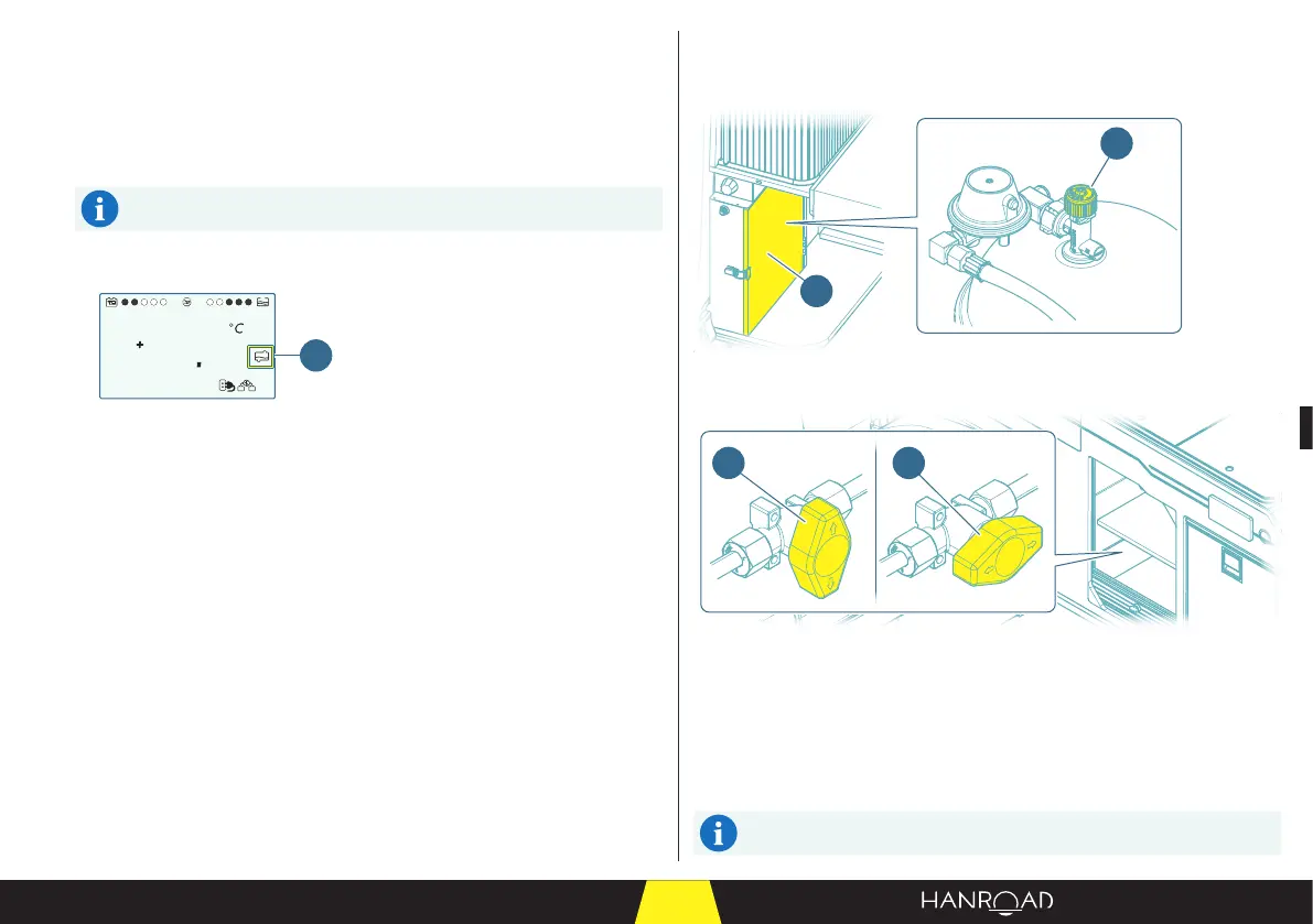 ■ Ouvrir la porte d'accès à la bouteille de gaz (1) (voir page 18).