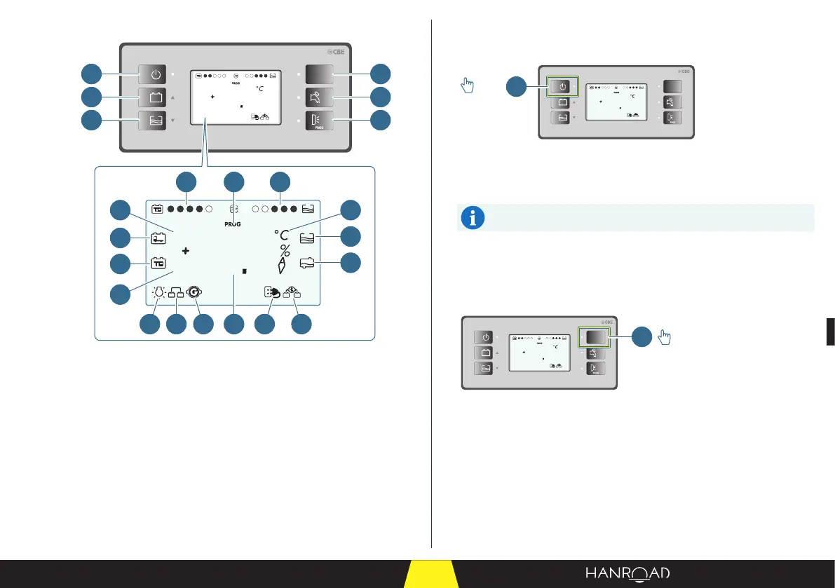 ■ Press the on/o button (1) for two seconds to switch the instrumentation