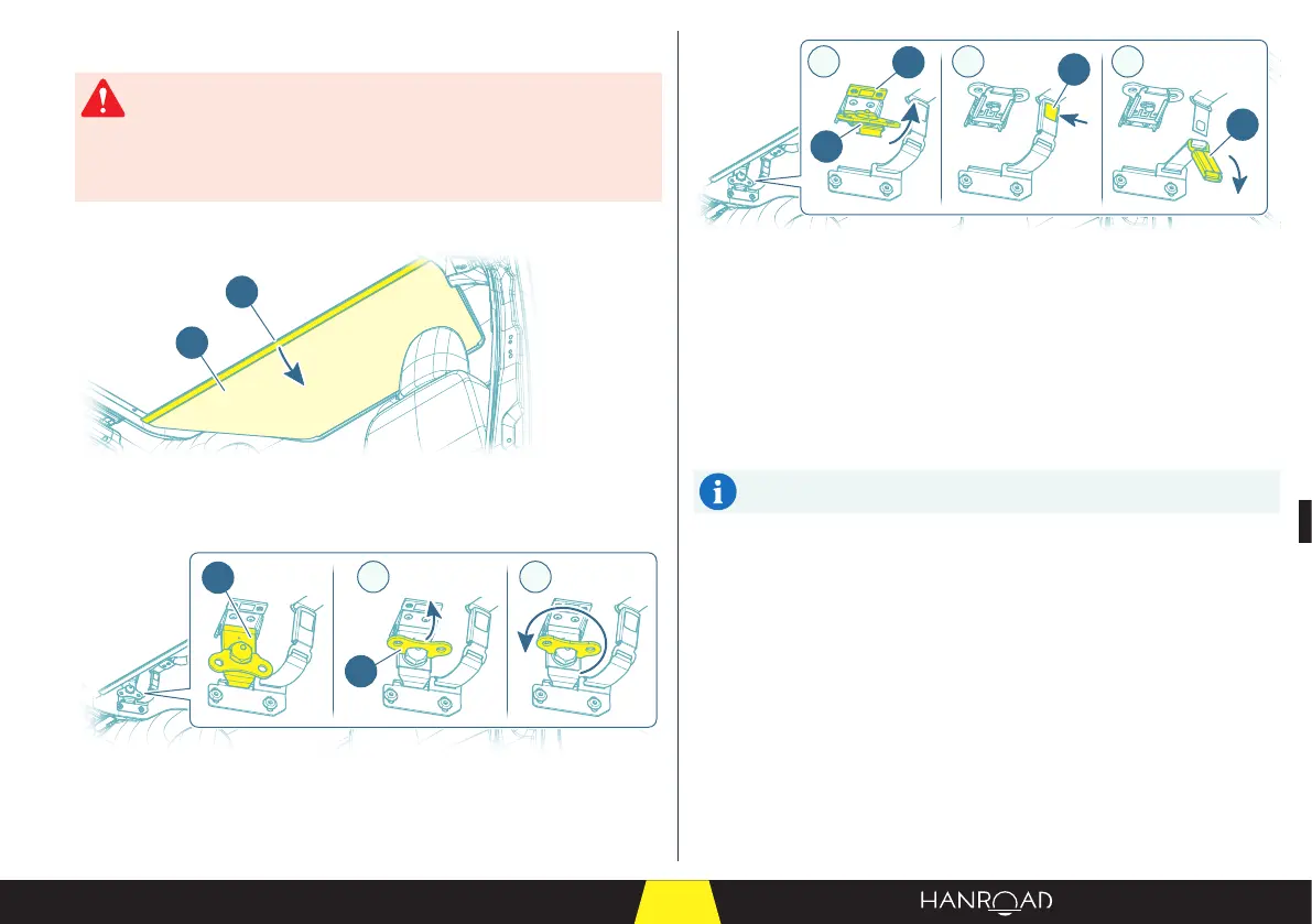 ■ Pull the Velcro strip (2) of the roof lining to access the roof raising system.