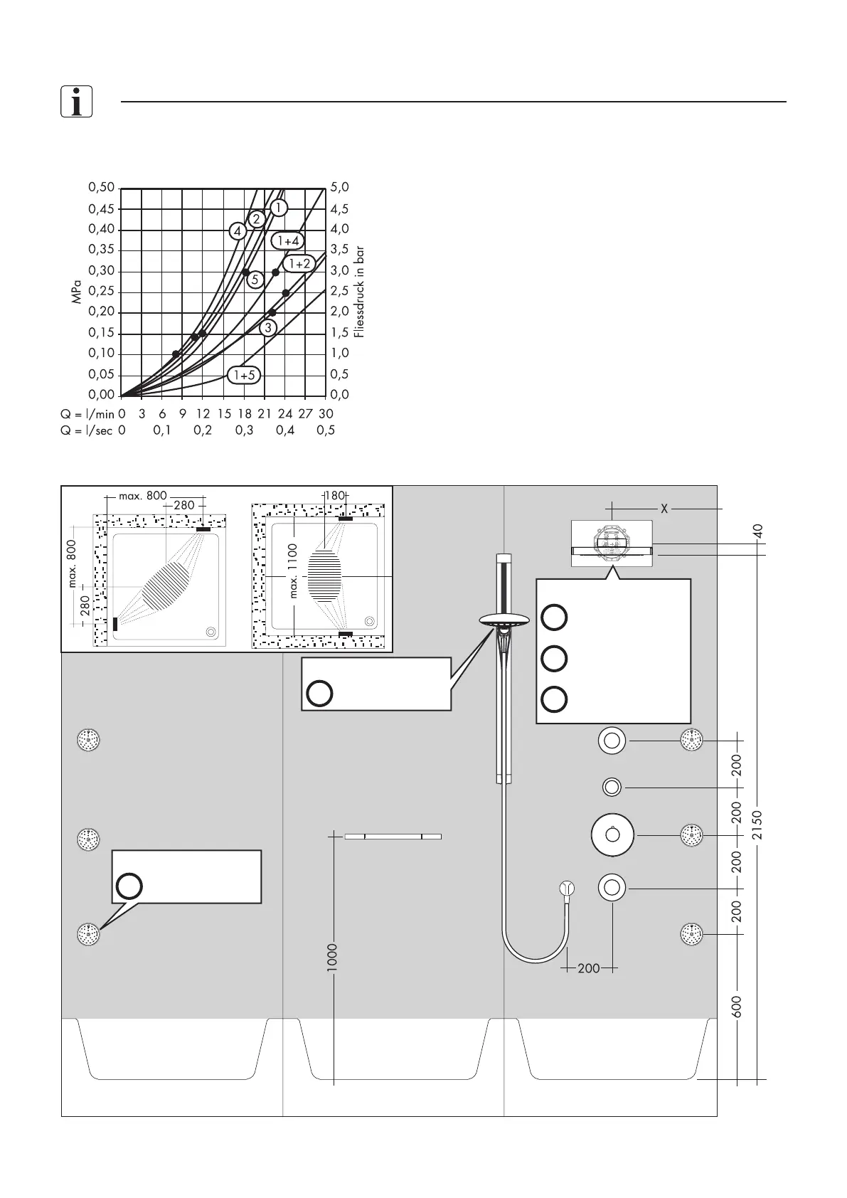 Hans Grohe Raindance Rainfall - Flow Performance Charts