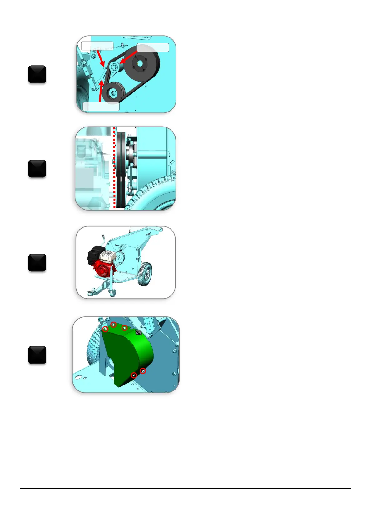 Ensure belts are properly tensioned (follow the ‘Adjusting
