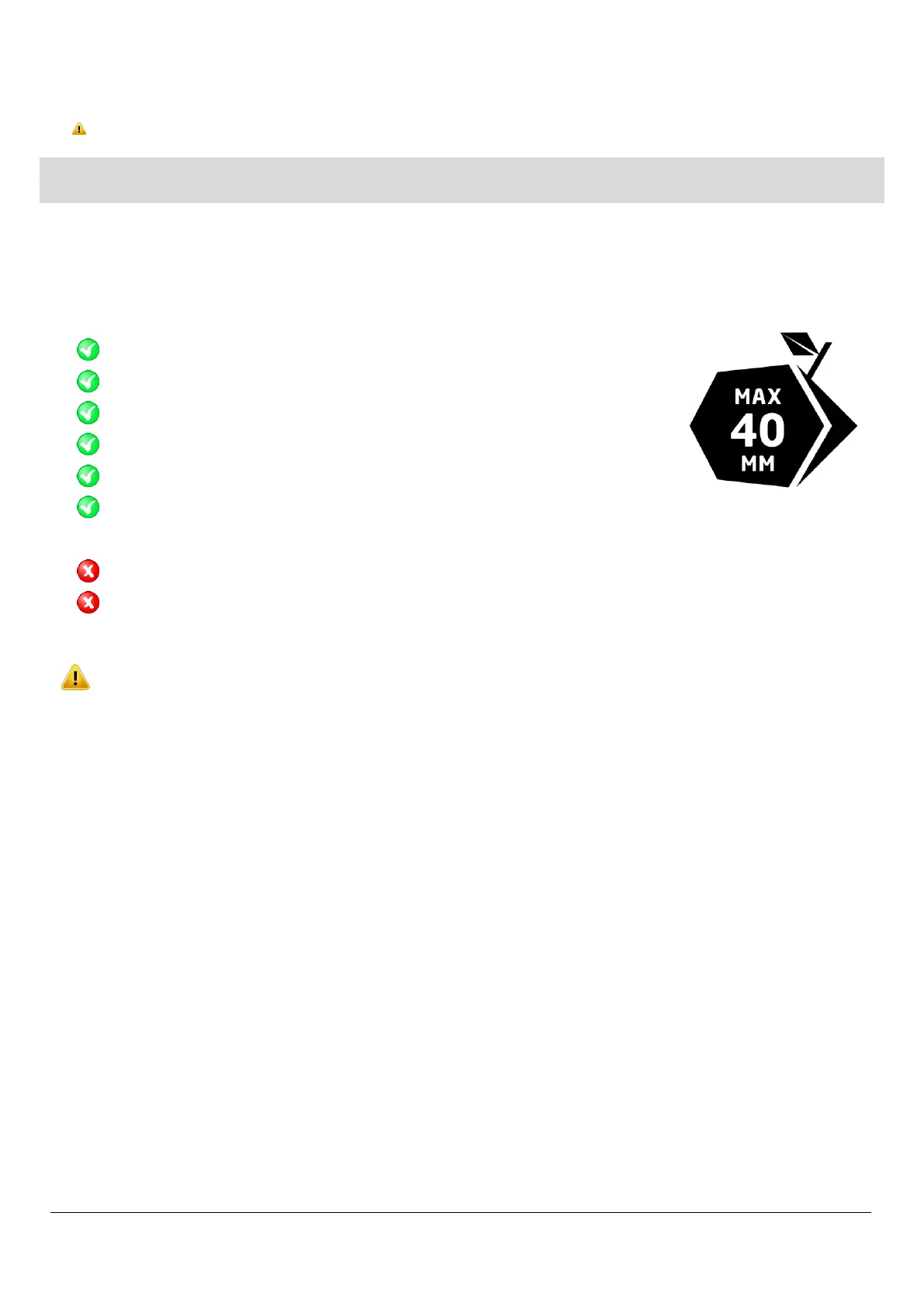 Do NOT exceed 40 mm branch diameter