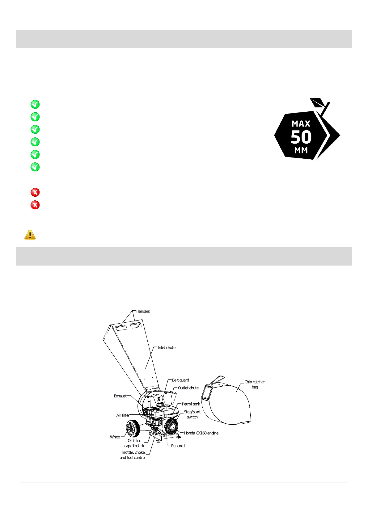 for intermittent use by the suburban gardener. Do NOT use the chipper for any other purpose.