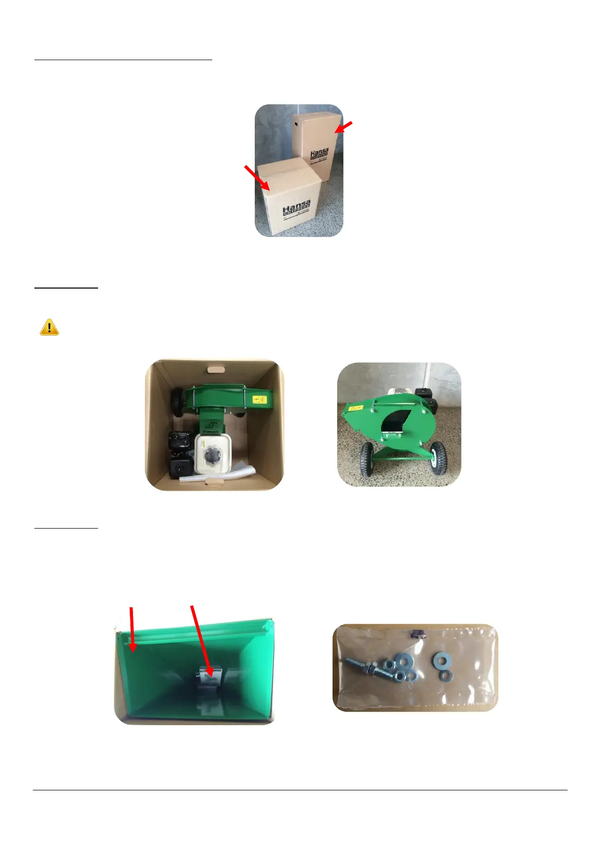 CAUTION: The chipper body weighs 53 kg; it is recommended to cut the box open rather than lifting the body out.