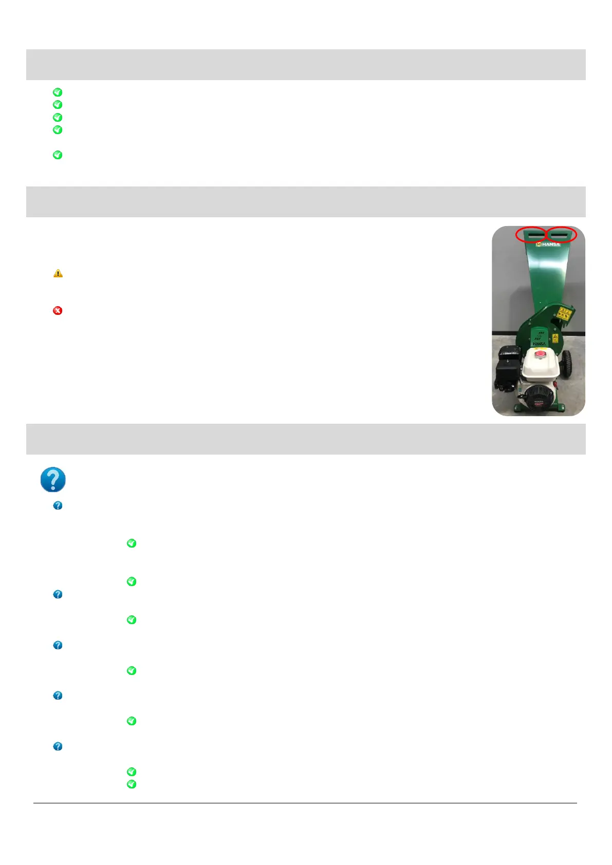 The chipper is fitted with oil alert and will not start if the oil level is too low