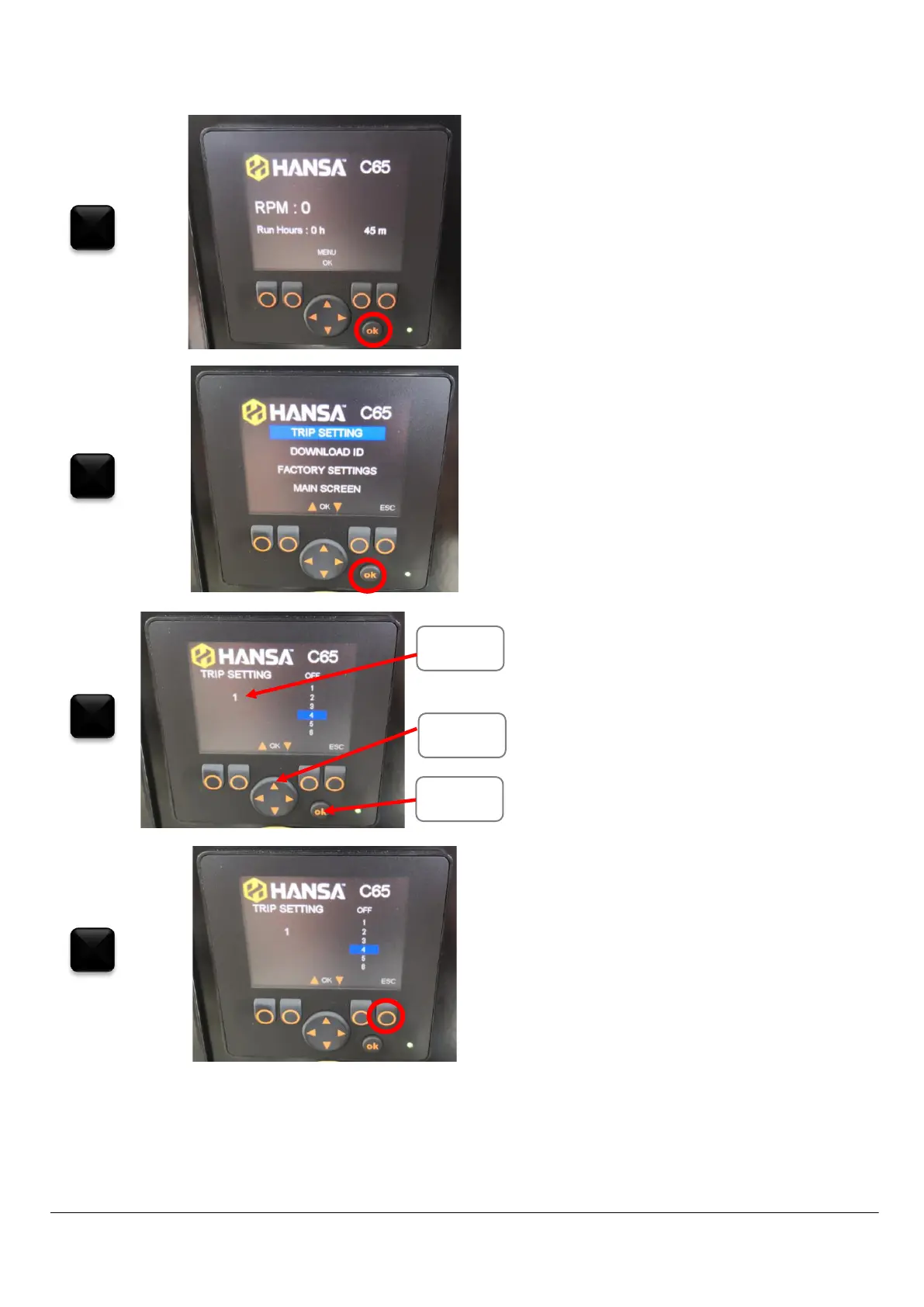 Press “OK” to enter “Trip Setting” (highlighted in