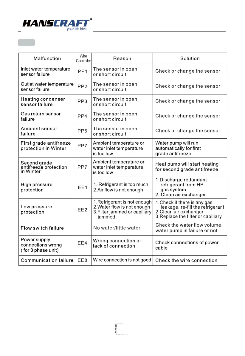 HANSCRAFT Evolution 25 - Troubleshooting Guide; Error Code Display