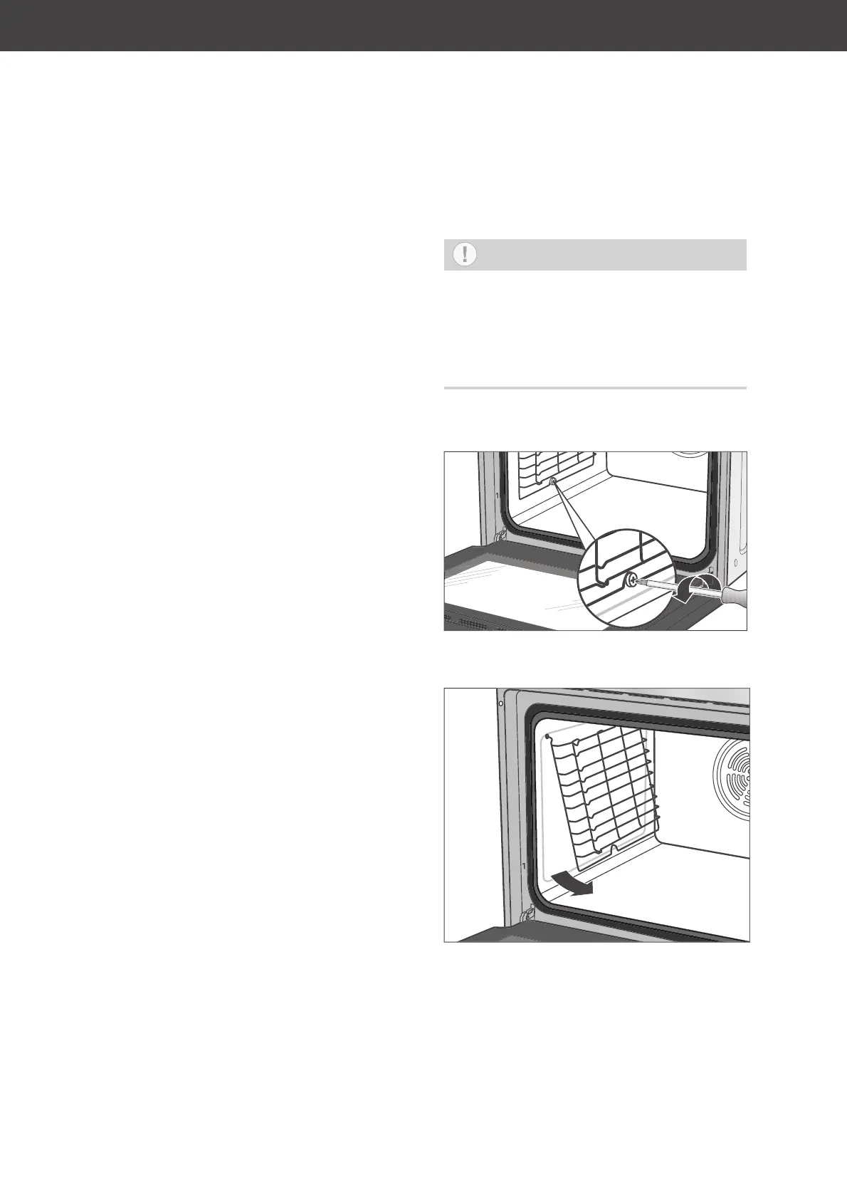 1. Loosen the screws of the oven rack and