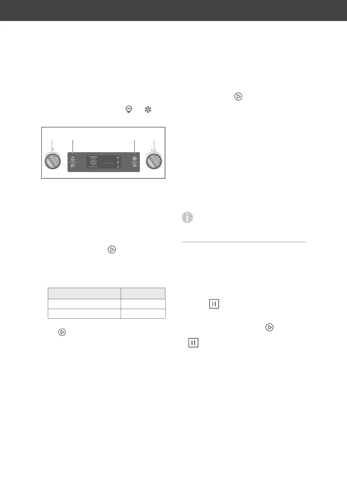 fan symbol. The oven lighting is on. You will