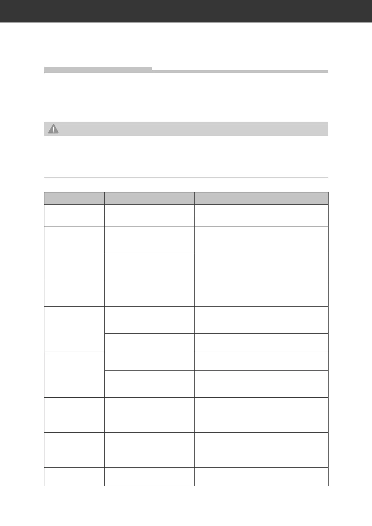 Troubleshooting table