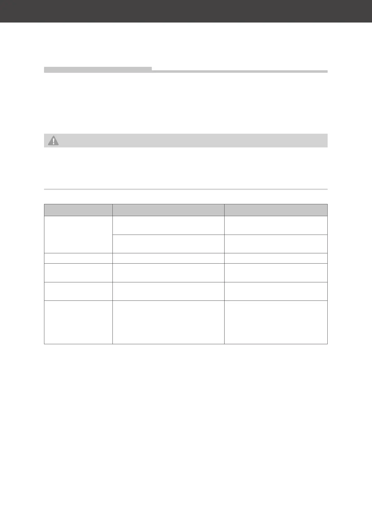 Troubleshooting table