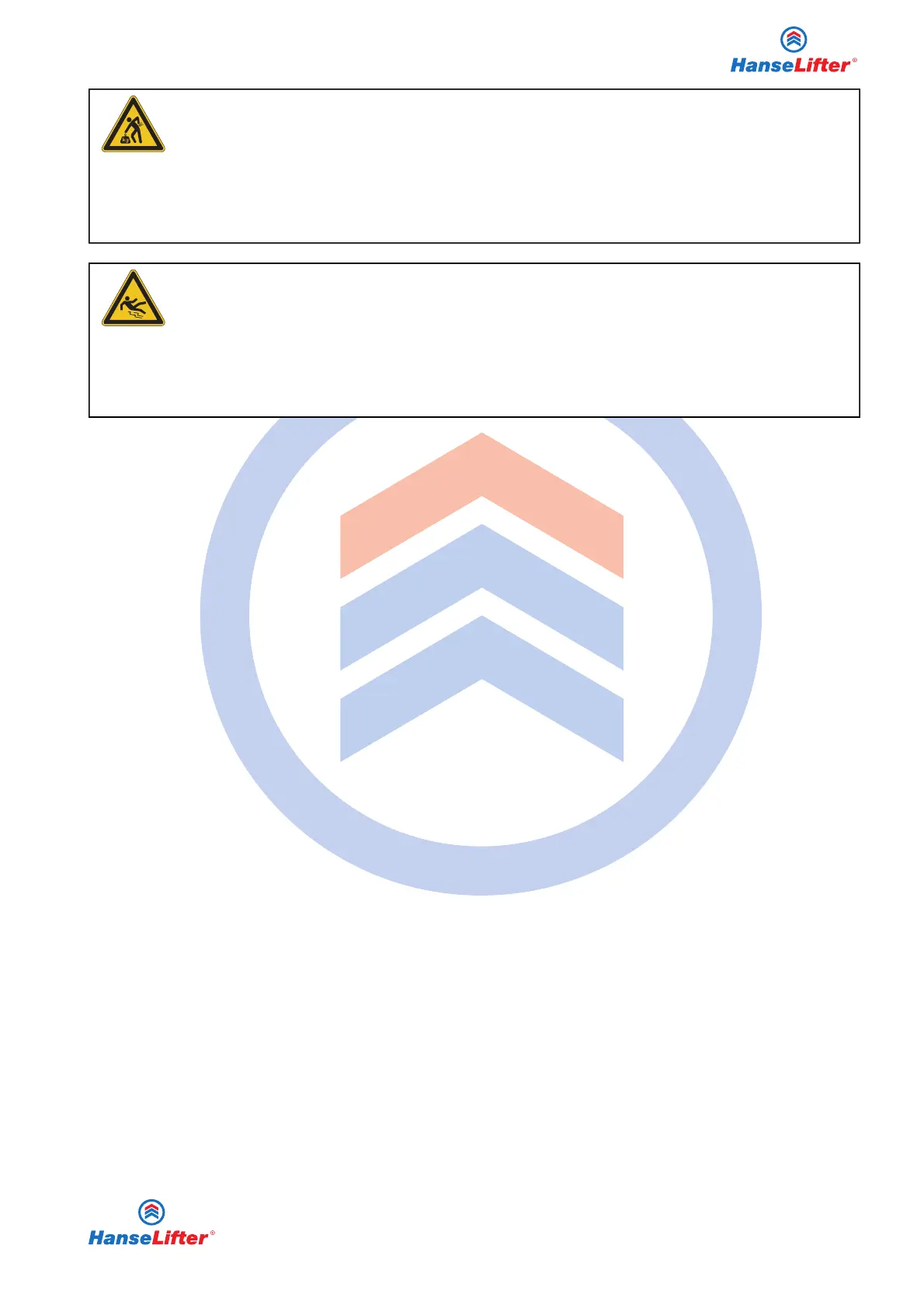 Gerät. Bei Nichtbeachten kann es durch die gehobene Last zu schwerwiegenden Verletzungen kommen.