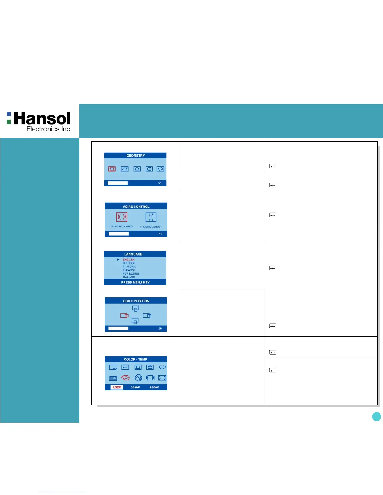 - Moves the OSD menu left or down in