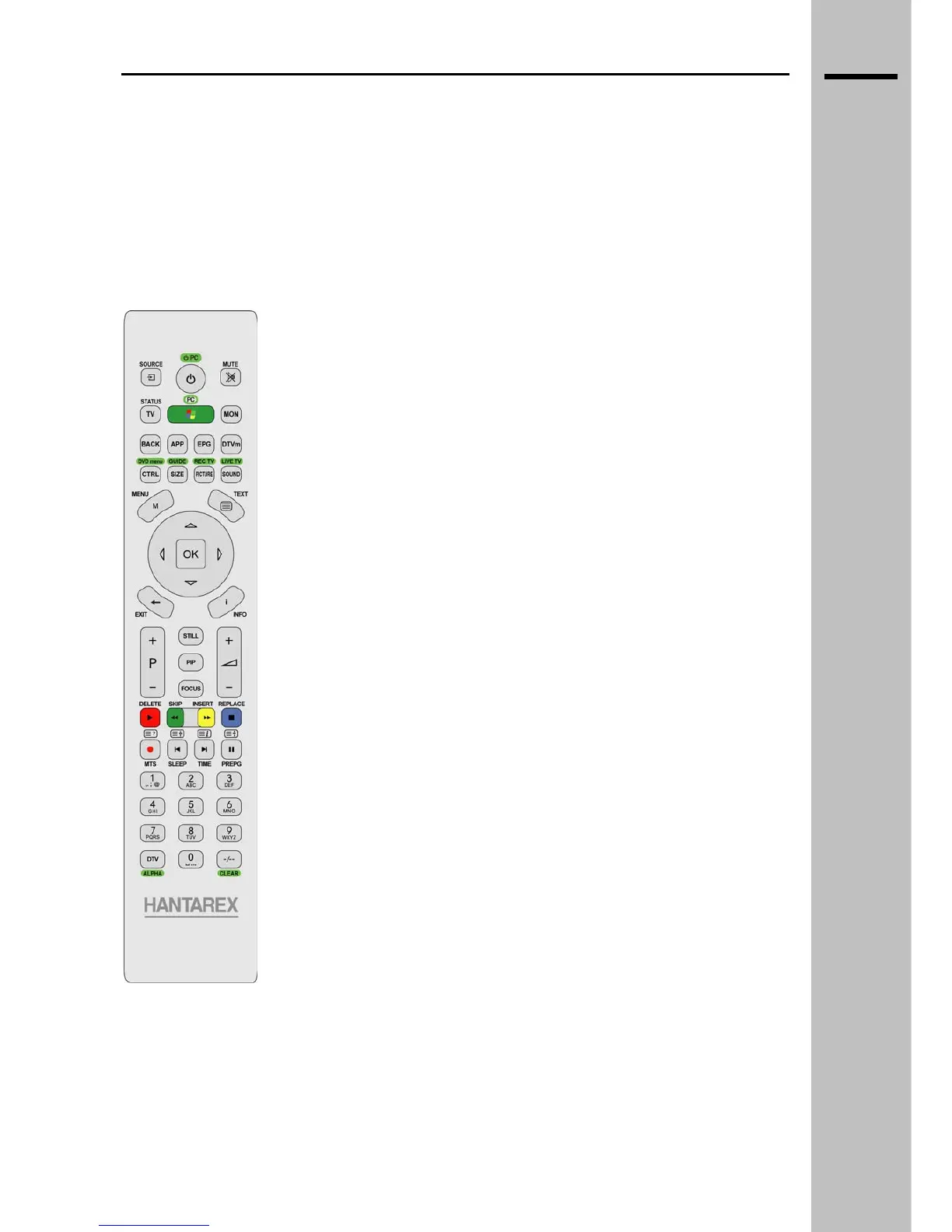 TXT zoom / PREPG / PAUSE Teletext zoom / Last channel selected /