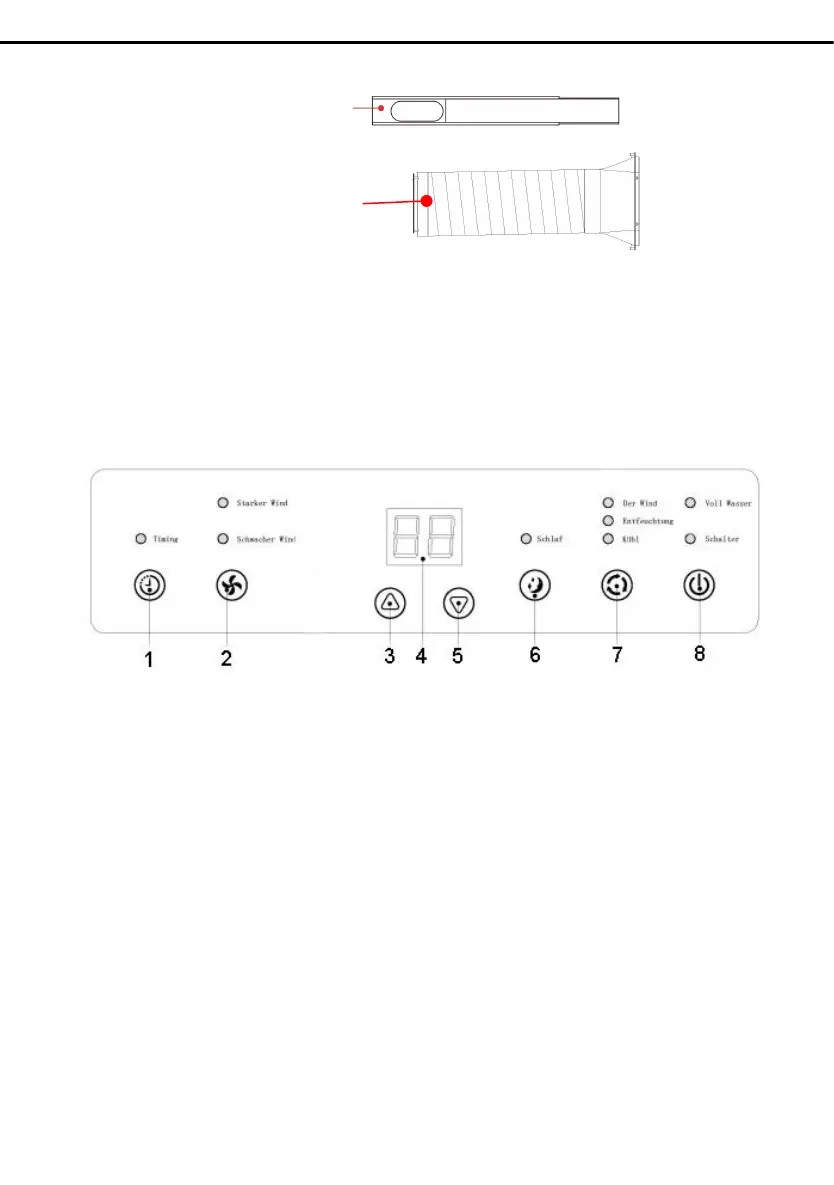 6. Schlaf - Schlüssel 7.Modustaste 8. Netztaste