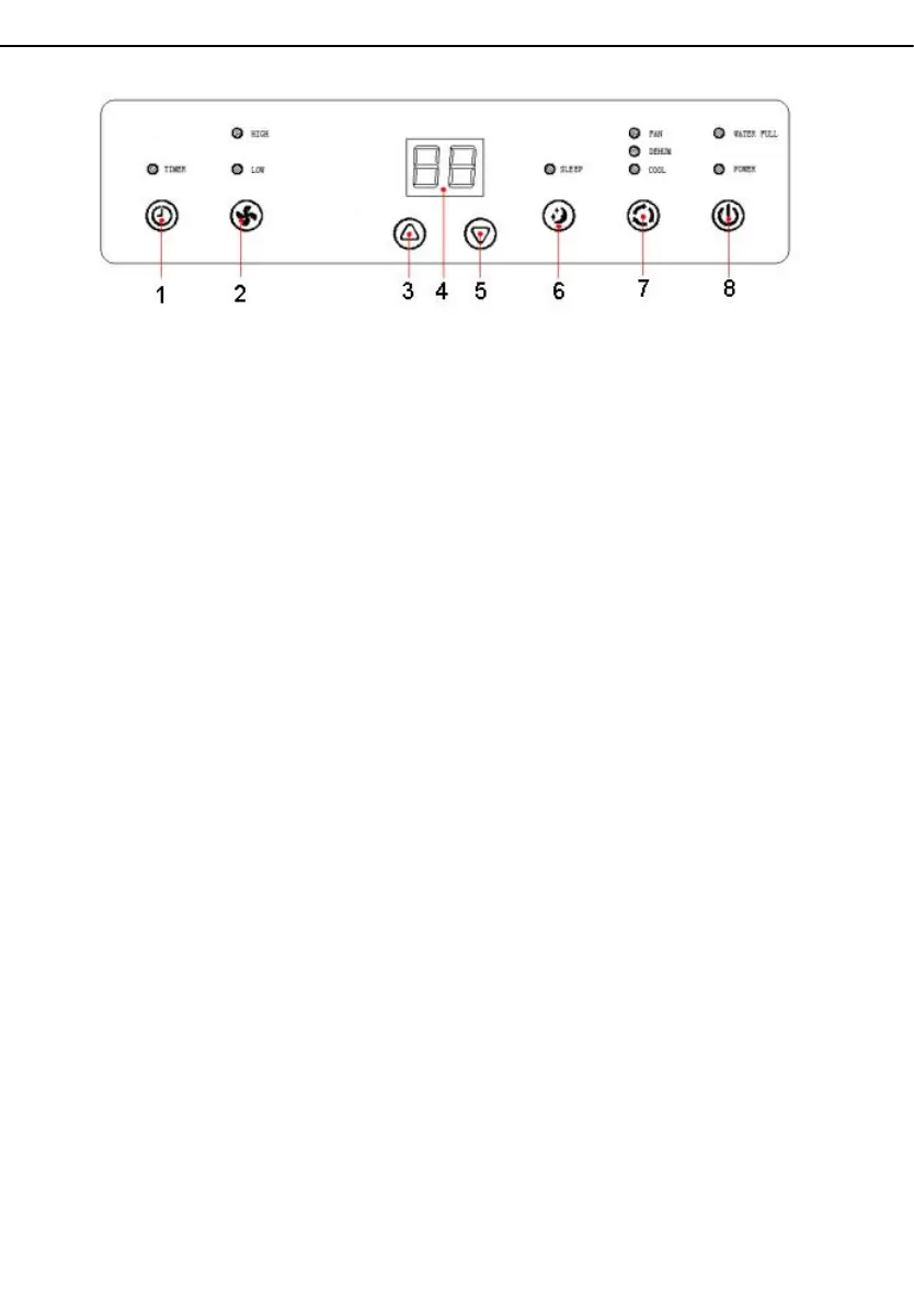 2) V režimu odvlhčování je stisknutí tlačítka ignorováno a ventilátor se bude