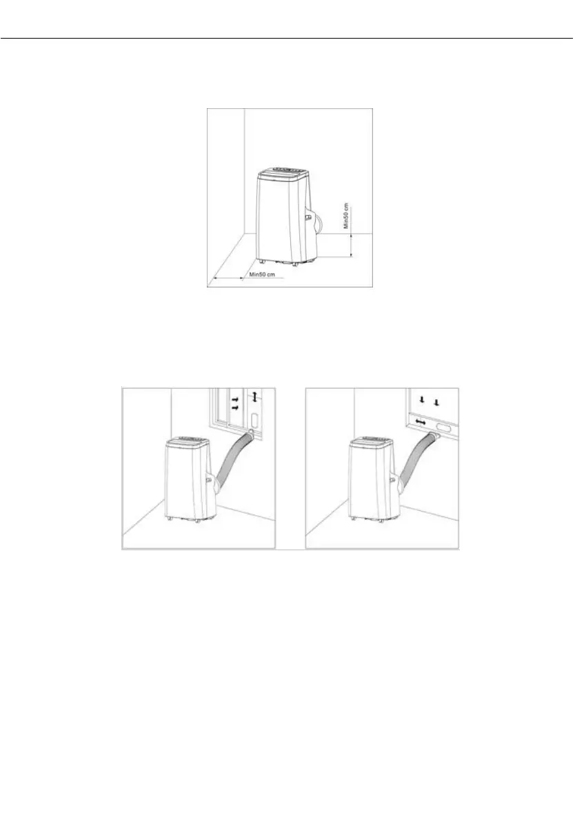 1) Premiestnite prístroj s nainštalovaným tepelným potrubím a kovaním pred okno. Vzdialenosť