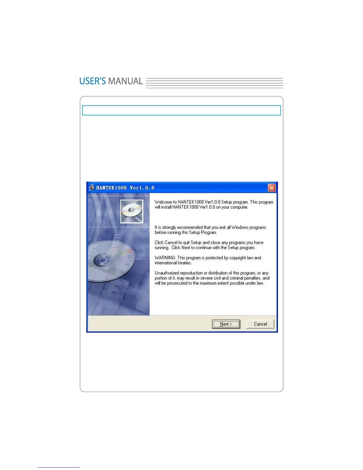 3. The software Installation is started. Click 'Next' to continue.