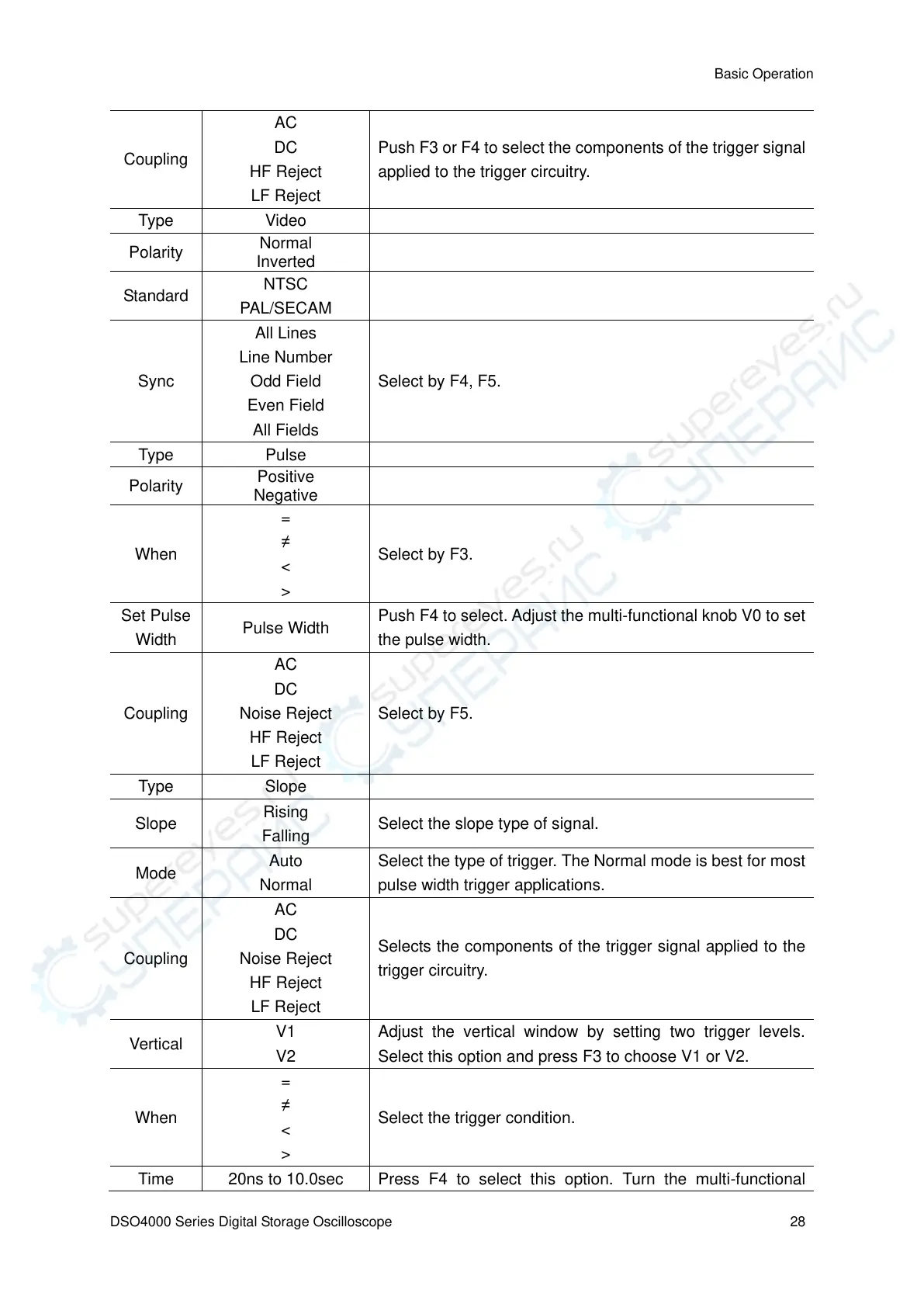 Push F3 or F4 to select the components of the trigger signal
