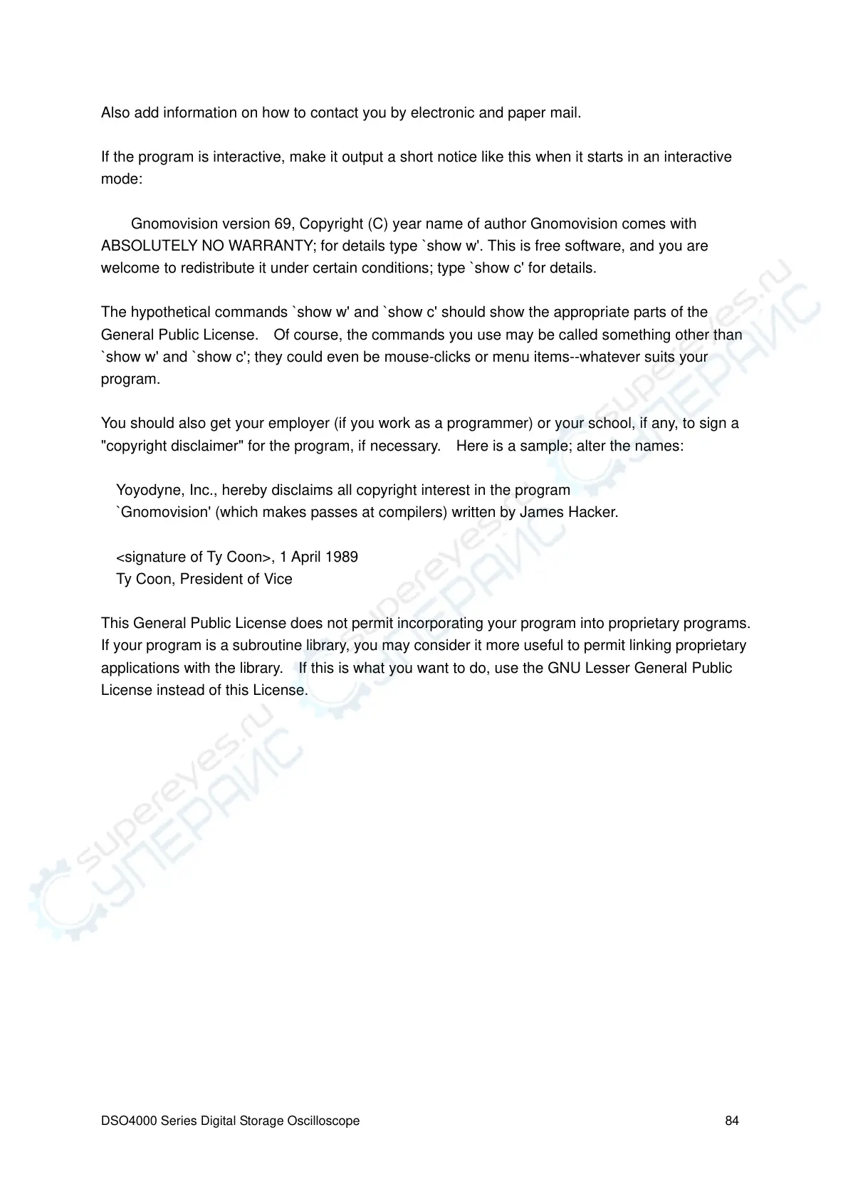 "copyright disclaimer" for the program, if necessary. Here is a sample; alter the names: