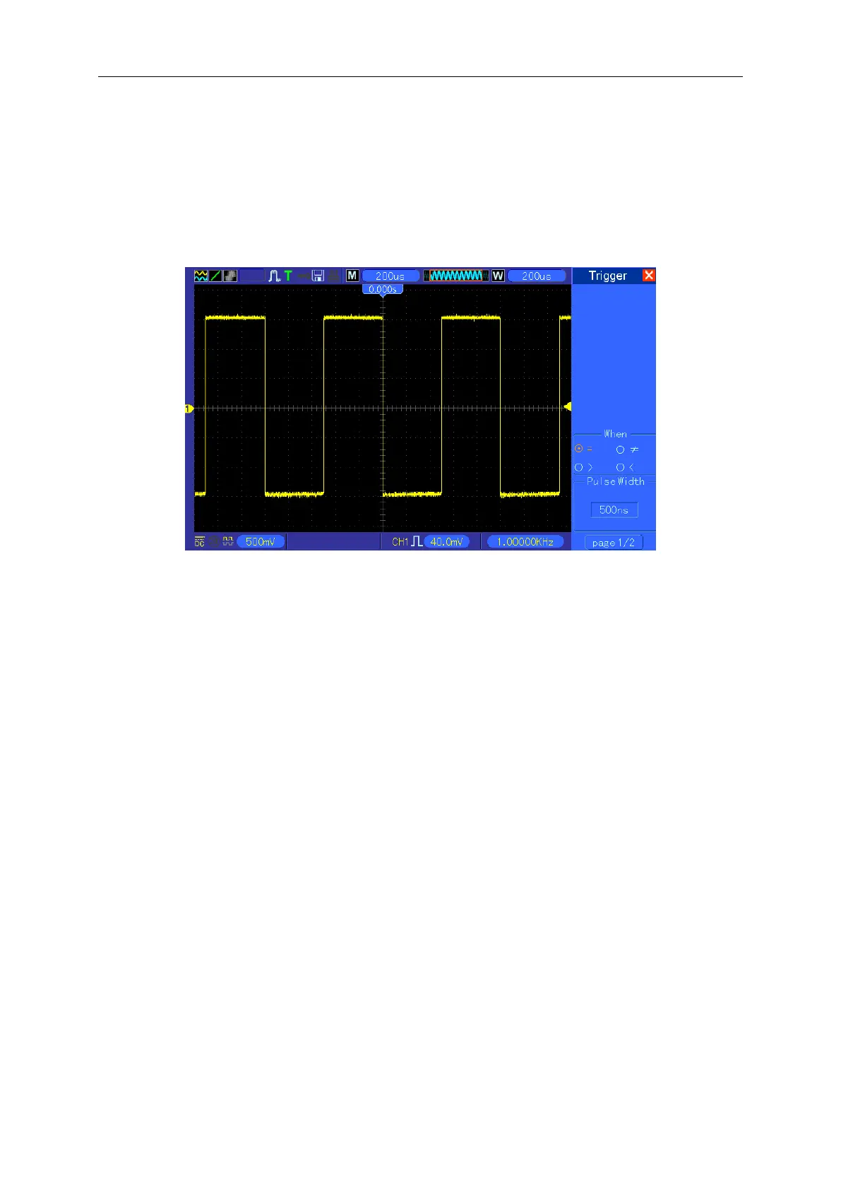 aberrant pulses as shown below, you may select ‘≠’ or ‘<’ to trigger on the pulse.