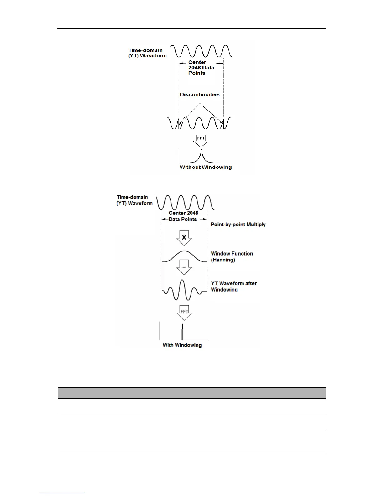 The Math FFT function has three FFT Window options. There is a trade-off between frequency