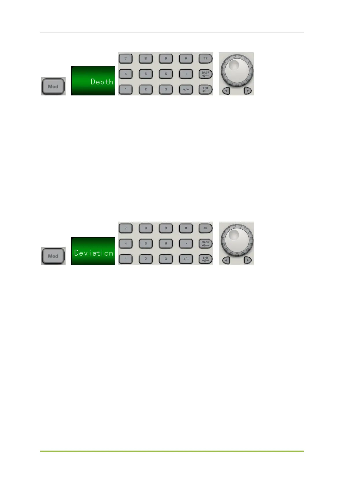 When the External Trig source is selected, the modulation depth (AM) or frequency deviation