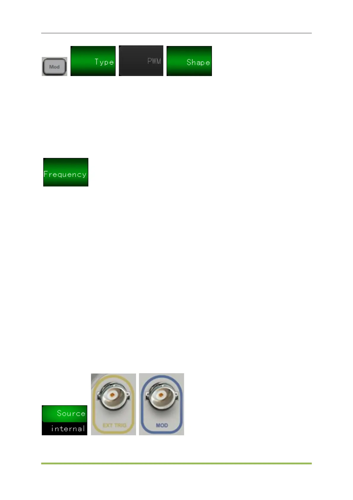 Modulating frequency (internal source): 2MHz to 500KHz. The default is 100 Hz.