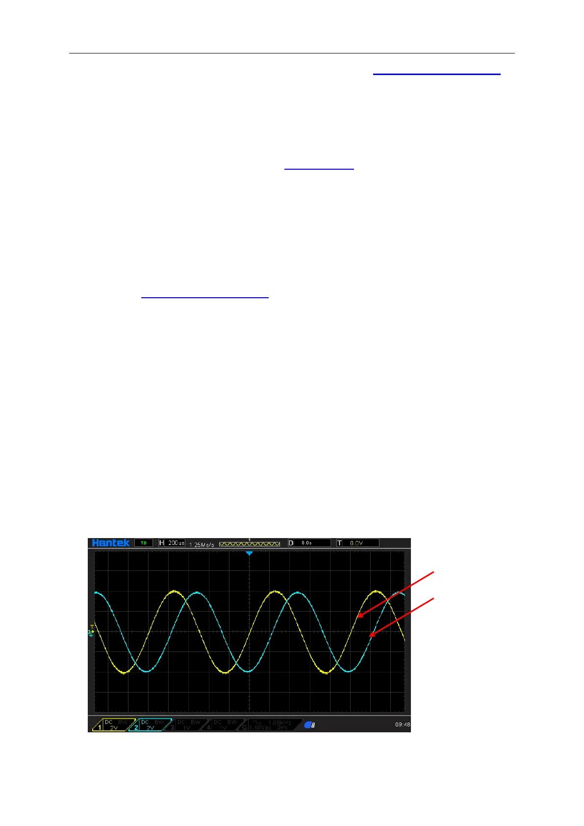 of the two channels. You will see that the phase deviation of the two waveforms displayed on the