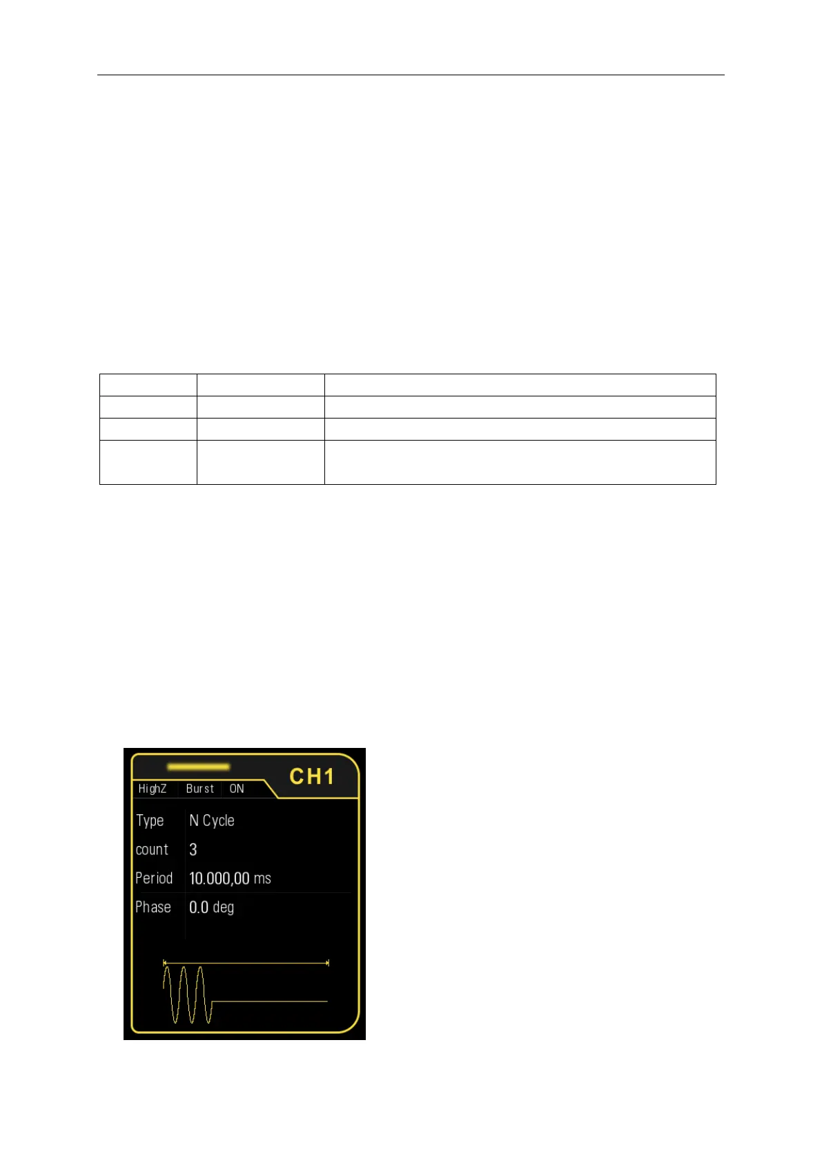 In N Cycle mode, the generator will output waveform with specified number of cycles after