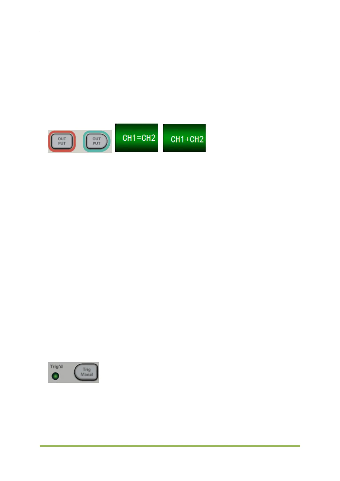 CH1+CH2: When thisbutton is on, the output signal of current channel will be the superposition