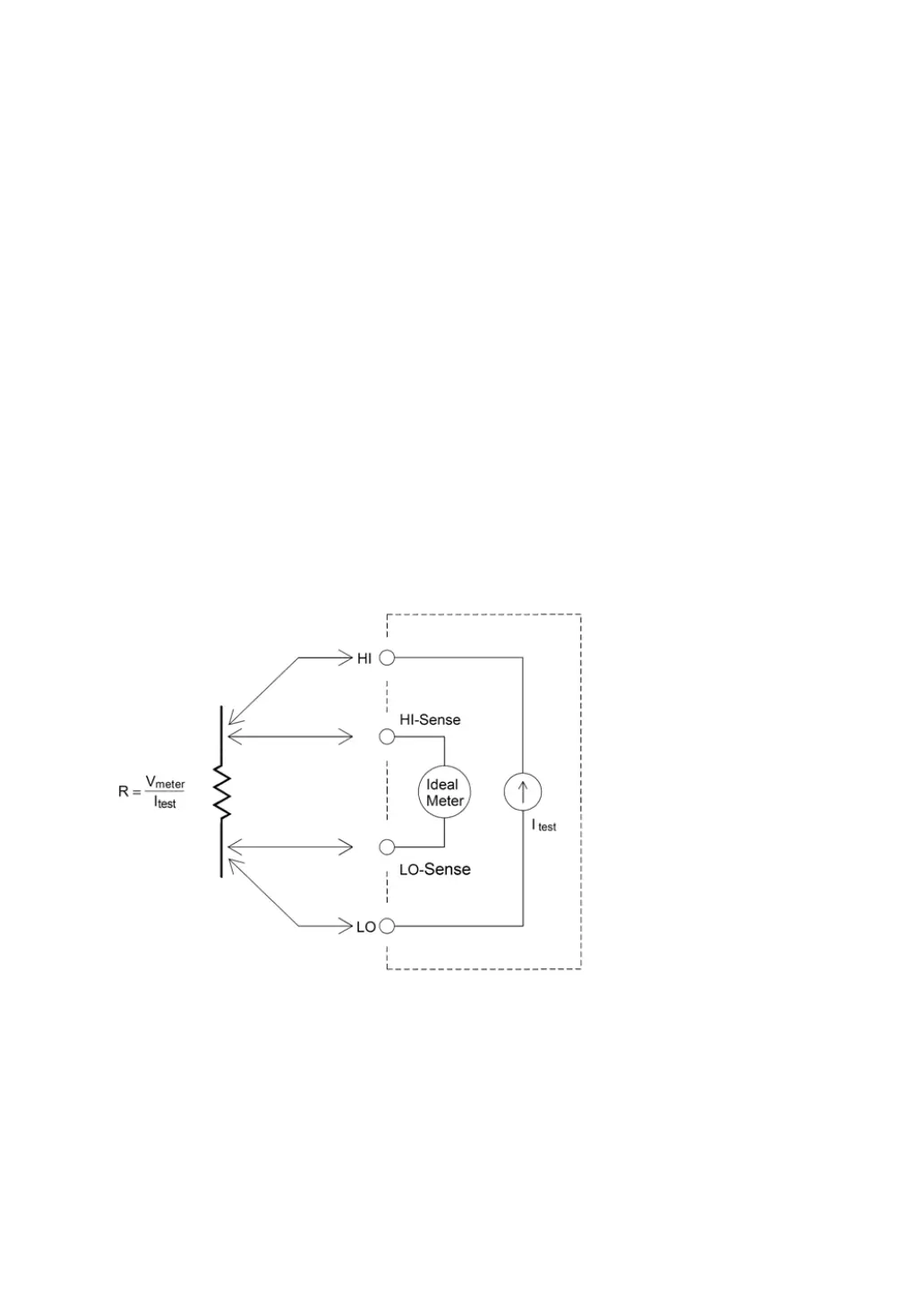 measurement. In both methods, the test current flows from the high end of the input to the