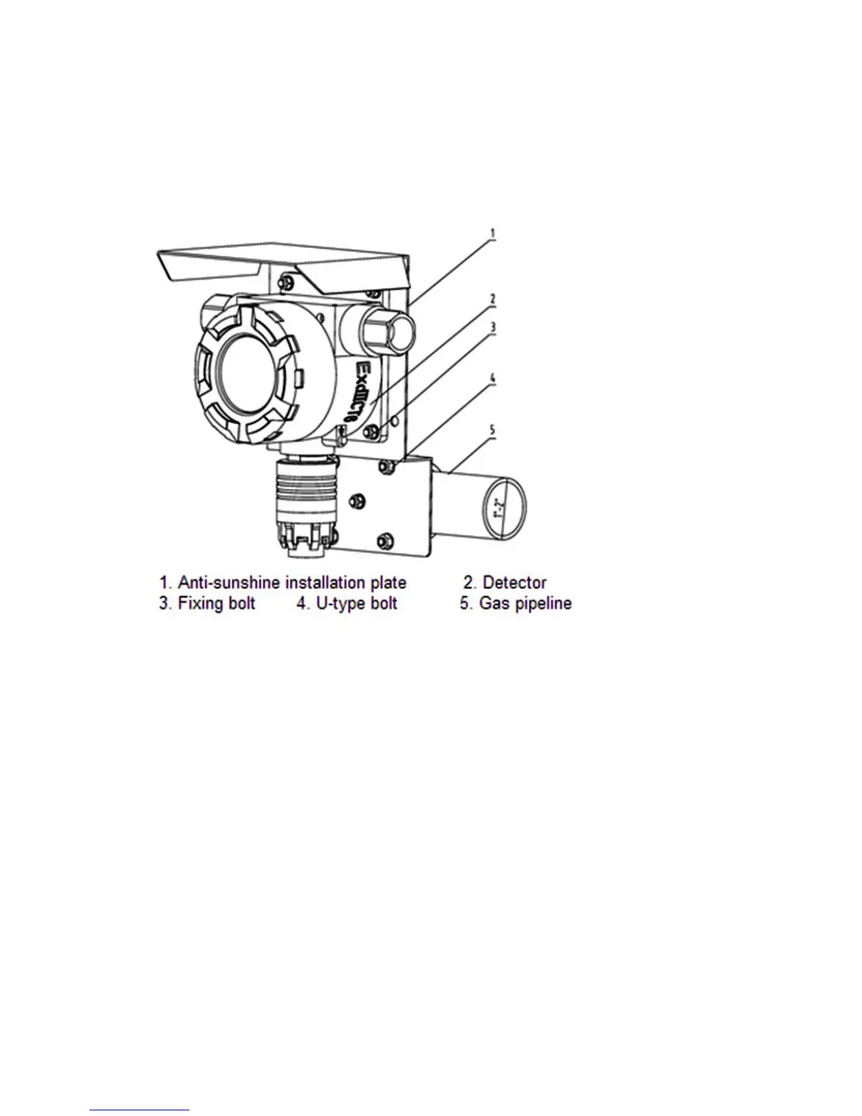 bolts to fix the hanging plate on the pipe, and then fix the detector onto