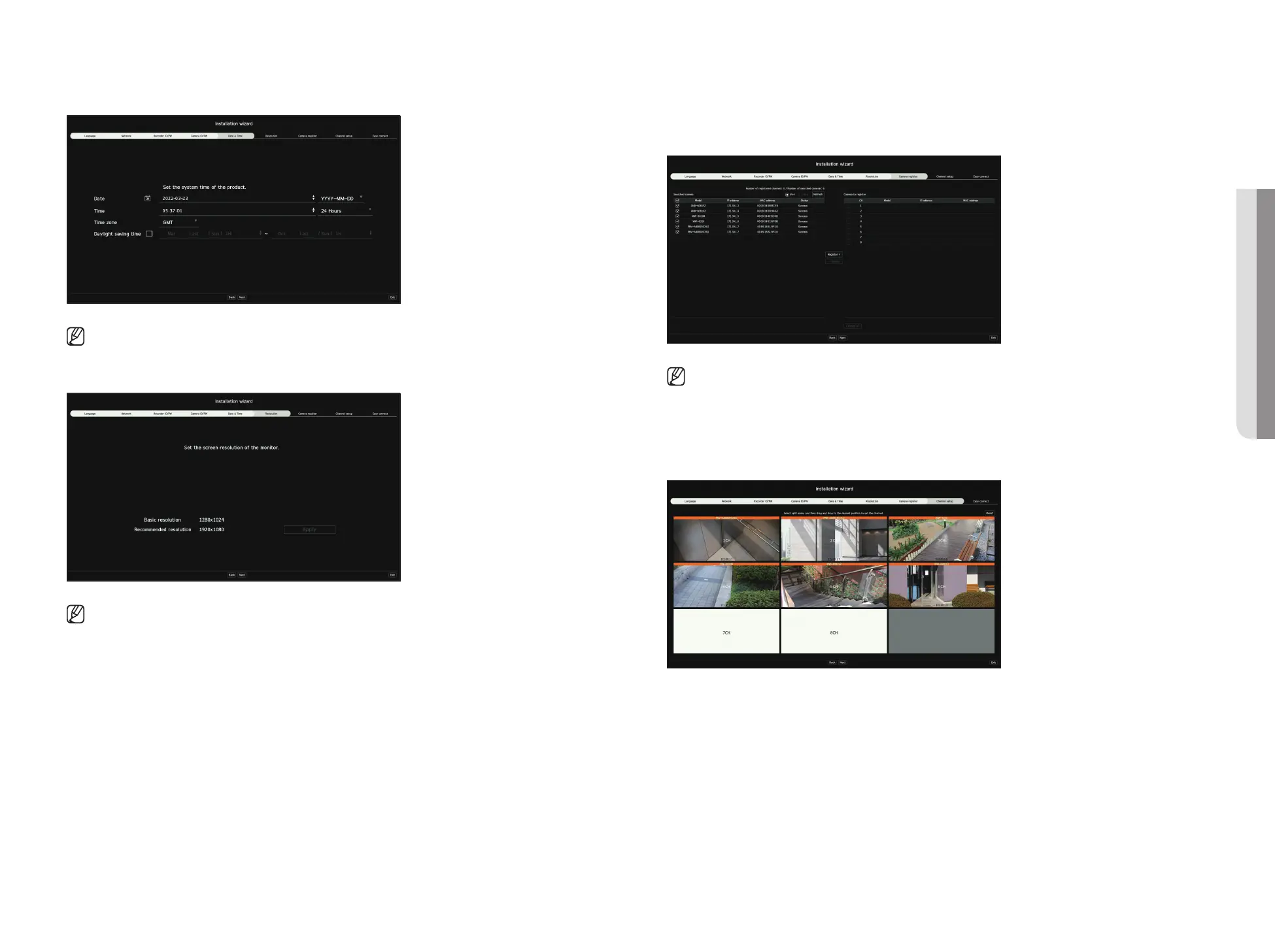 8. On the <Channel setup> screen, you can view the camera videos registered to each channel in thumbnails along