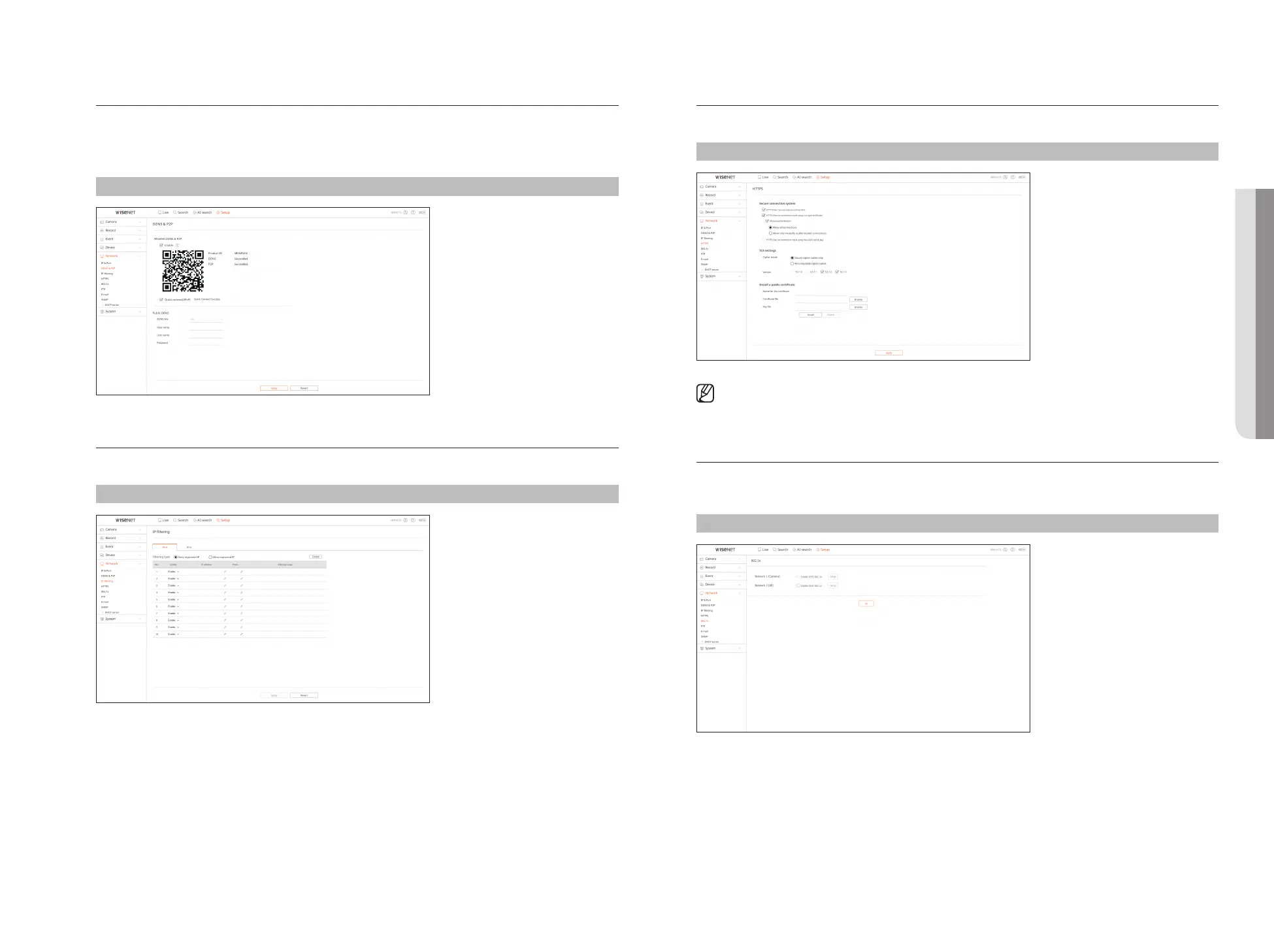 Before using Wisenet DDNS & P2P, please set up the network connection and DDNS first.